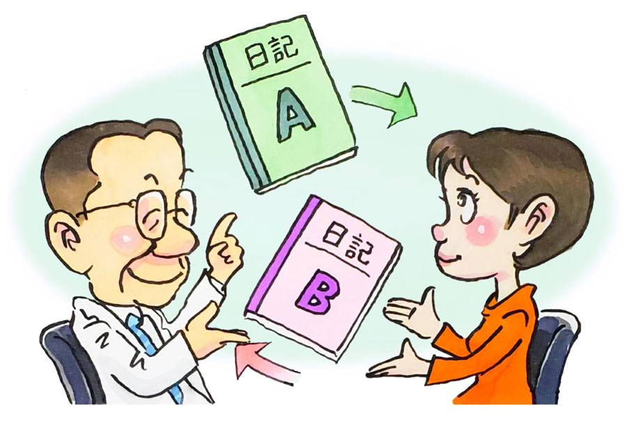 ここでは、実例を元に、プライバシー保護のため指導の重要な部分は残して改変、修正した2例を提示します。日記内容とその指導を中心に、経過を述べていきます。
