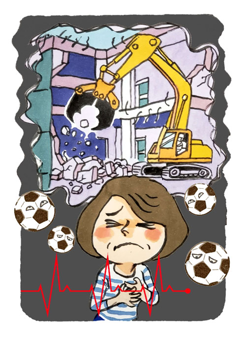 私が、壁打ちをしたりボールを蹴ったりする音に、動悸を感じるようになったのは、母が亡くなってしばらく経ってからのことでした。近所の子供なので、注意してはいけないと思い、我慢していると、早朝から、家の前でサッカーをやるようになりました。車のドアの開け閉めの音にも動悸がするようになりました。その頃、近所で解体工事があり、重機の重低音が毎日響くようになりました。