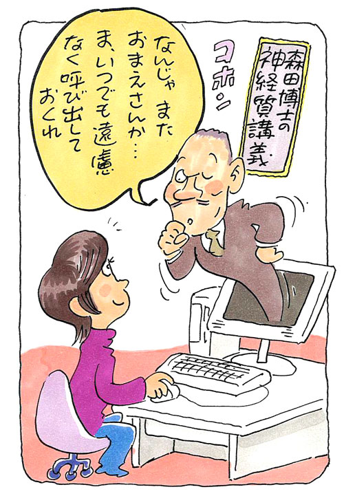 当時は月に一度の集談会と、年に二度ほど集中的に行われていた学習会でしか森田に接する機会はありませんでした。でも、今回Mさんは、インターネットで財団のHPや掲示板にアクセスすれば、毎日いつでもどこでも森田先生の教えに触れることができる。また分からないことを質問したり、日々の中で困ったことや苦しかったことを相談し、アドバイスをもらうこともできる。さらにはそこに集う人たちとも知り合えて仲間ができるという画期的な方法を紹介して下さいました。