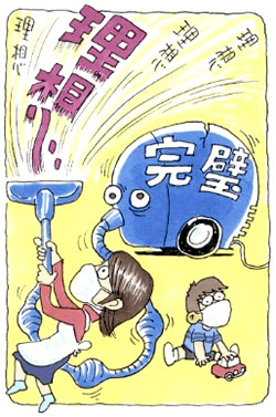 その後、息子の喘息管理に必死になる傍らで、幼稚園で父母の会の取りまとめ役をやりました。家では相変わらずの掃除魔で、暇さえあれば掃除機がけや拭き掃除といった家事を徹底的にしていました。それ以外の時間は、幼稚園の役員の仕事に費やし、毎日いっぱいいっぱいでした。ちょうどその頃から、時折頻脈が起きたり、胃の調子が悪かったり、不眠になったりと、それまでの健康に自信のあった自分には考えられない不調に悩まされるようになりました。それでも「出来ない自分・思い通りにいかない現実」の存在に気付くことが出来ずに、ひたすら走り続けていました。そんなある日、スーパーで買い物中に、今まで感じた事のないドーンという大きな不安感と血の引く感じ、手足のしびれといった大きな不安発作に見舞われました。自分で、一体何が起きたのかも良く分からず、なんとか家へ帰り着きました。その状態があまりにも衝撃的で、しばらく外出が出来なくなりました。自分が精神的にバランスを崩しているという自覚はありましたが、精神科への通院やその種の薬を飲む事に強い偏見があったために、漢方や催眠療法といった民間療法に次々と手を出しました。どの療法も、私の場合は殆ど効果がありませんでした。不安感は膨れ上がる一方で、スーパーや子供の学校へ行けない・乗り物に乗れないといった症状が次々と現れ、しまいには近所の道を歩く事さえ、不安発作とその予期不安のために随分長い間出来なくなりました。家から一歩でも出ると、動悸と呼吸困難感、お腹の底から突き上げるような不安感が襲ってきて、家から出る事が恐ろしくなりました。